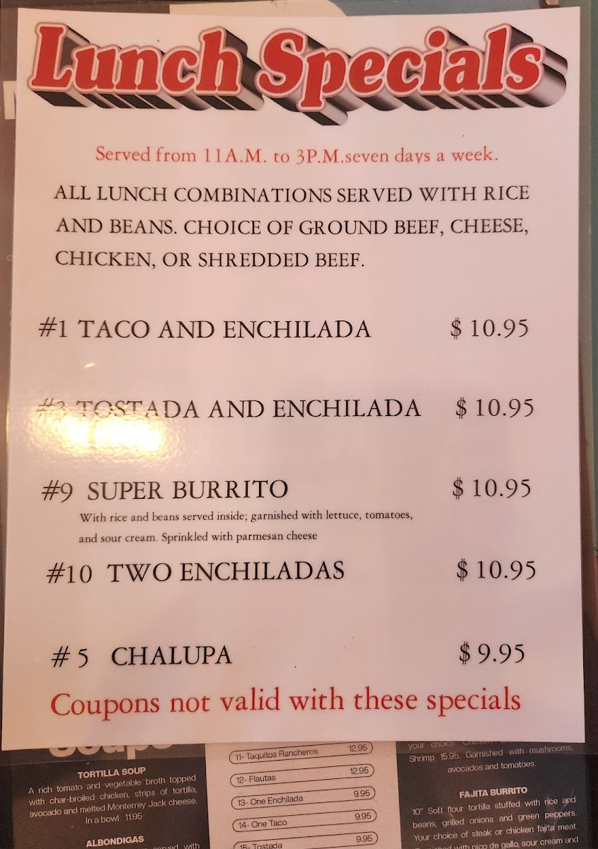 Complimentary Delights: Savor complimentary chips and salsa, including a zesty bean dip that will awaken your taste buds.